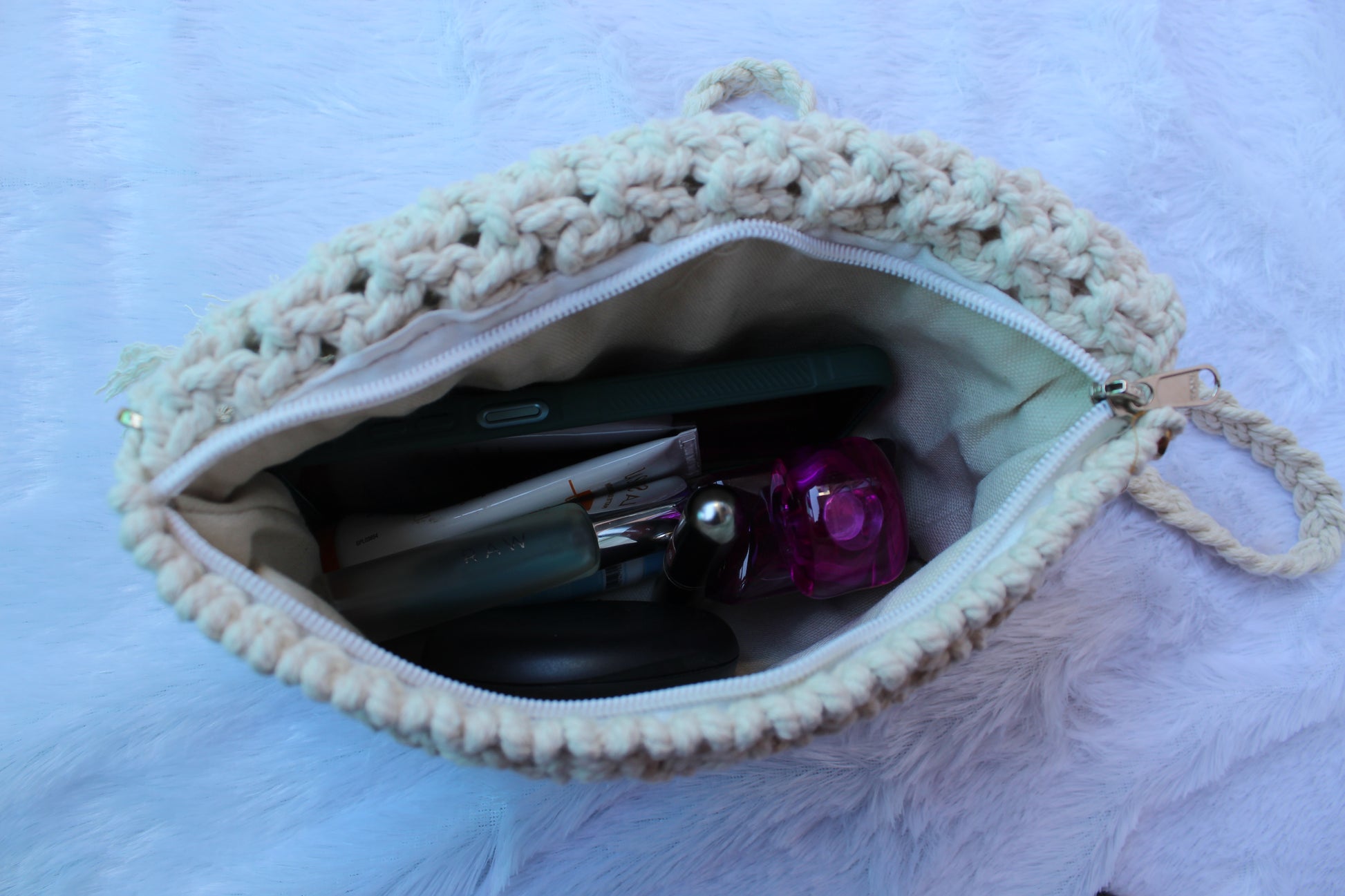 Modern boho-chic design bag ideal for casual outings, brunches and dates merging effortlessly with both ethnic and western outfits. Hand made by local artisans with 100% high quality natural fibres, it has zipper enclosure, this macrame sling bag promises durability, style and elegance.